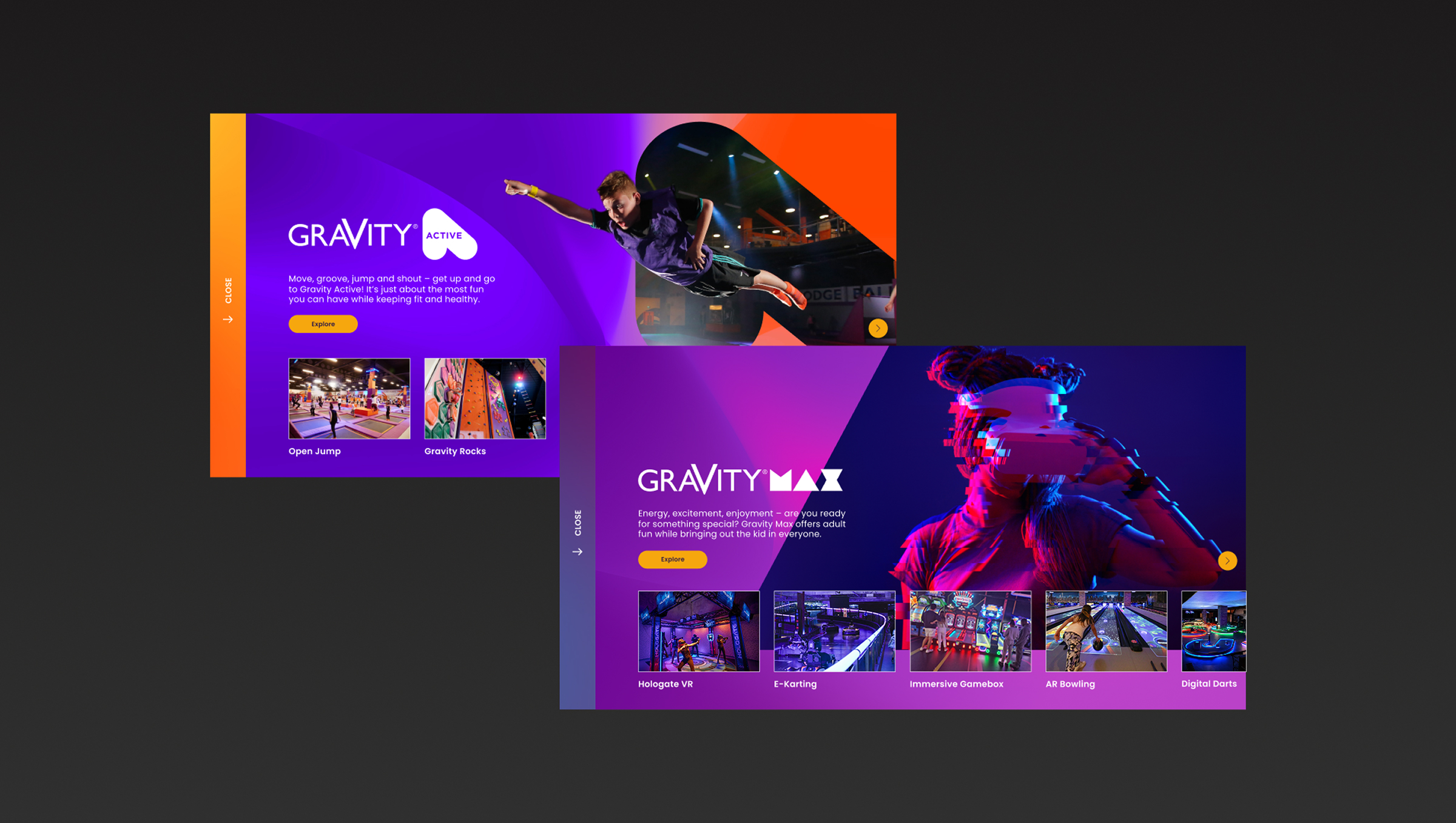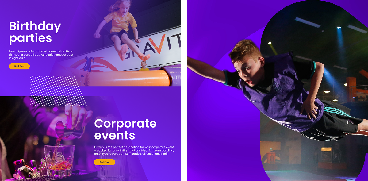 We designed and developed a new digital presence of Gravity, which underpinned the unique experience of the venues, showcased activities and events, and improved online bookings.
