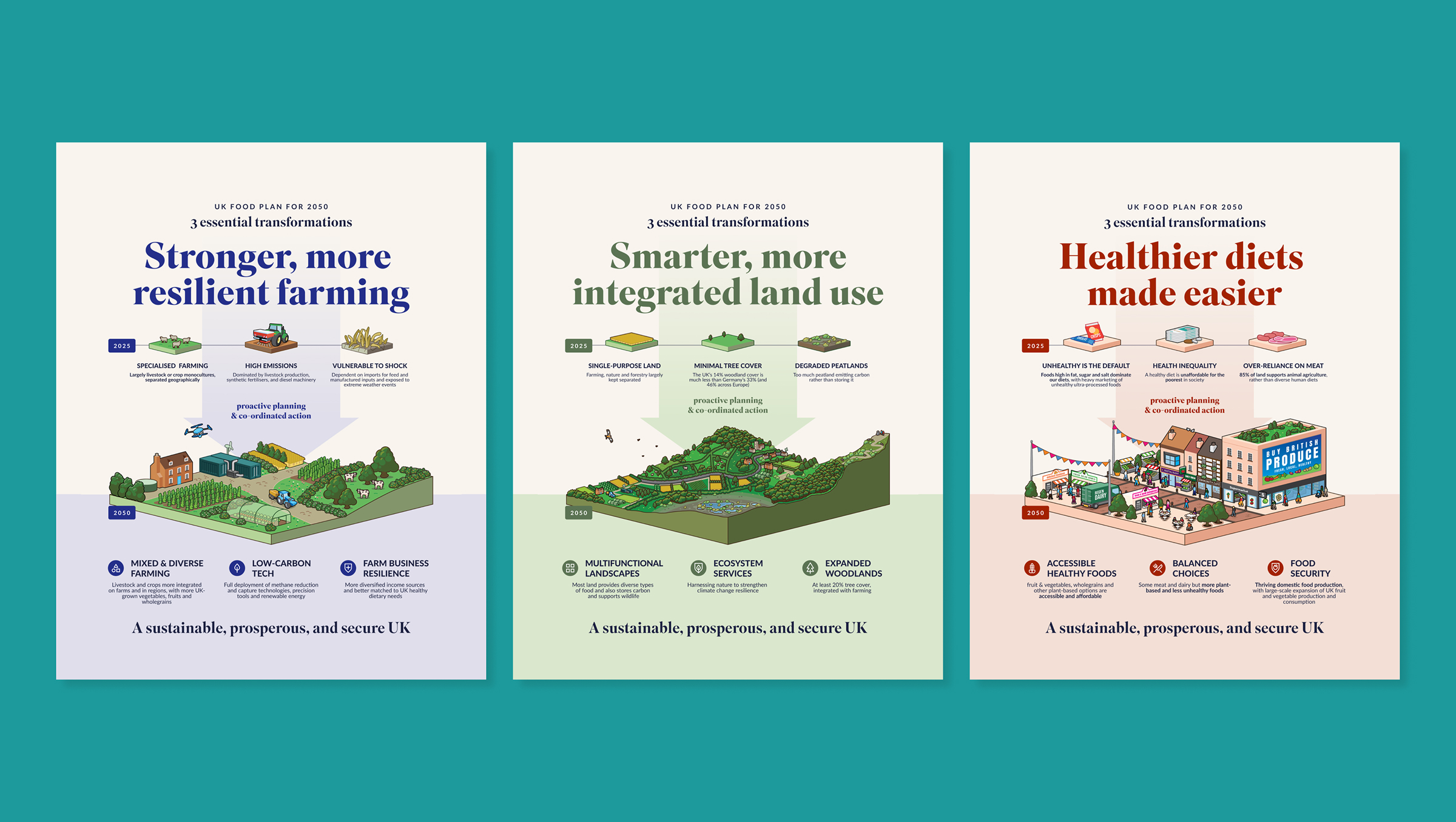 We produced illustrated infographics for the University of York, helping them to visualise the future of the UK’s food production system.